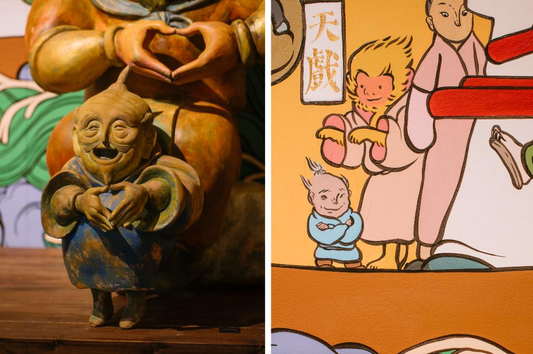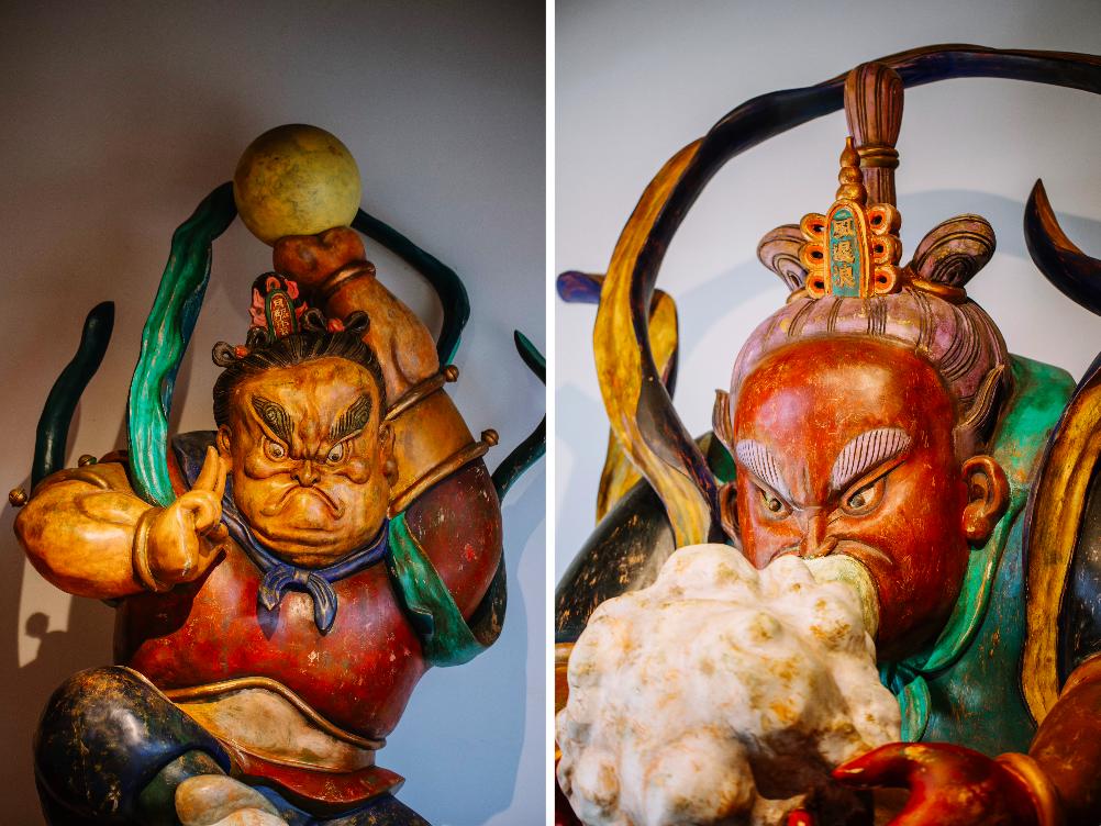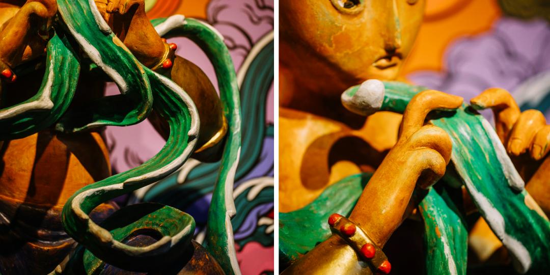 这个空间有400m²,前面的“照海殿”有5尊神仙,和后面17尊神仙形成一个完整的制式,这些神仙的故事都是我自己编的,雕塑背后壁画上的神仙则是泉州真实存在的神仙。