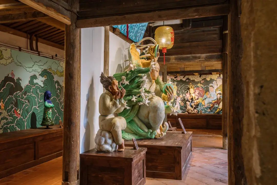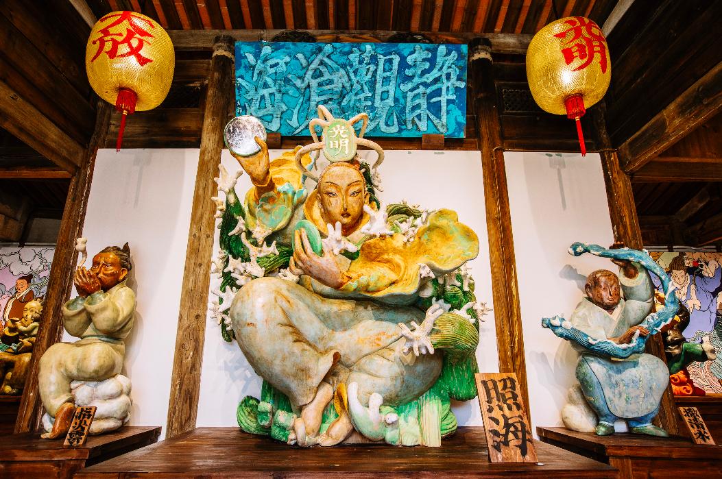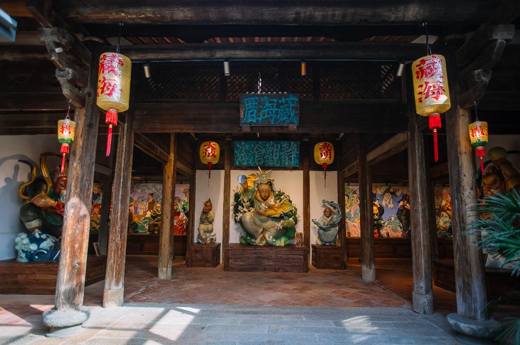 “织海”开始,“吞海”结束,“照海”在前,“藏海”在后。藏在“照海”影壁之后的,是藏海厝的题眼,只有90公分最小的一尊雕塑,它才是真正的主神“藏海”。它包罗了藏海厝所有神仙的故事。