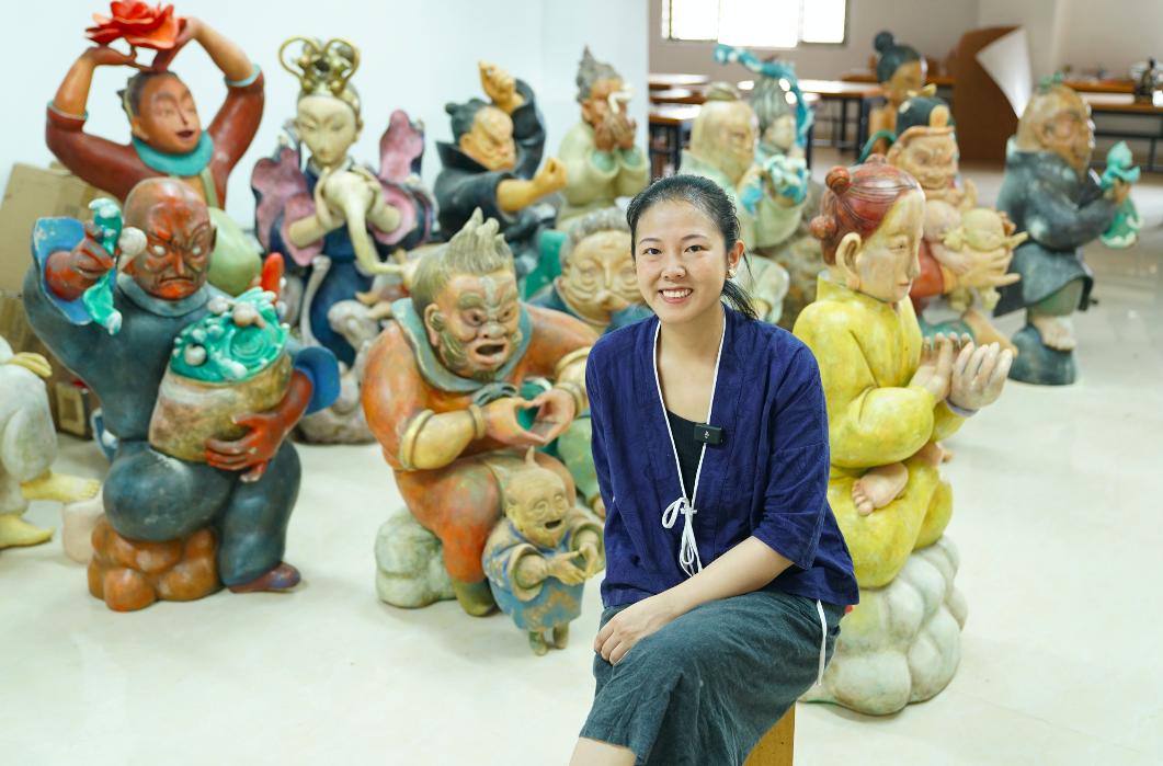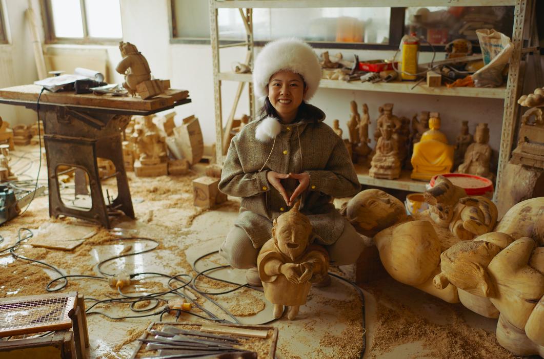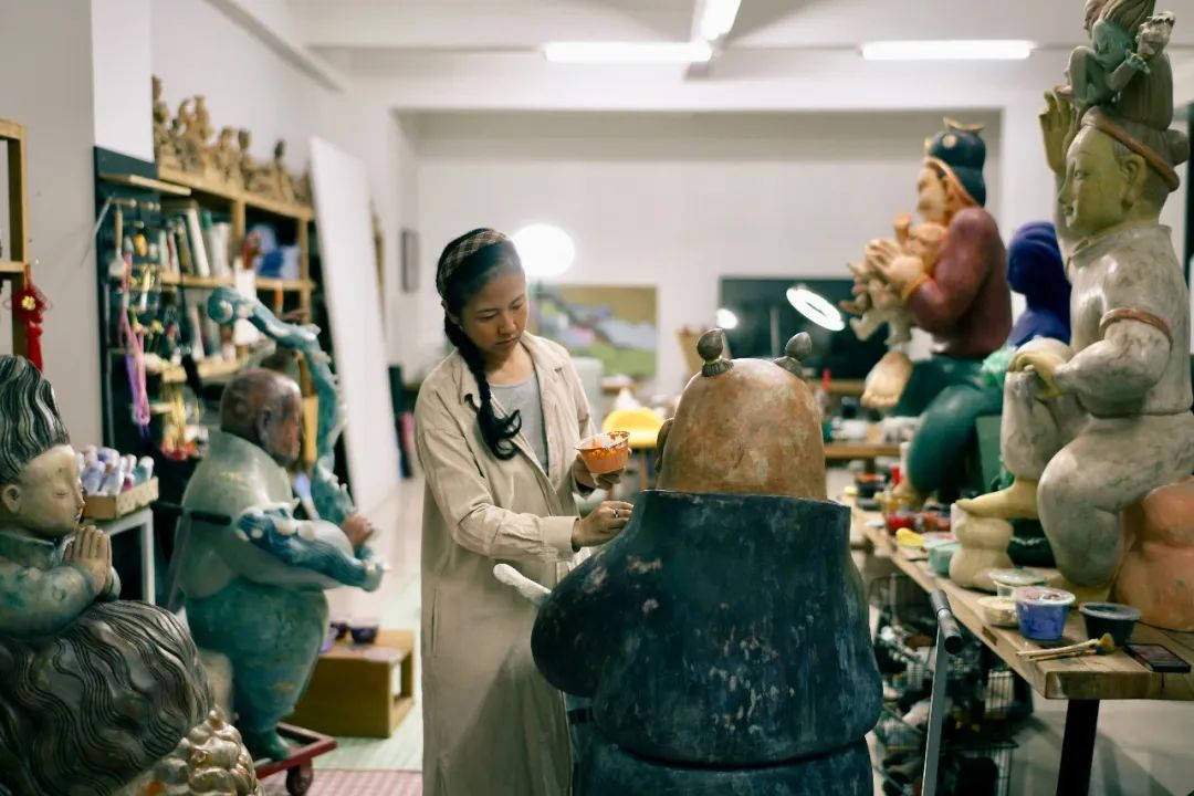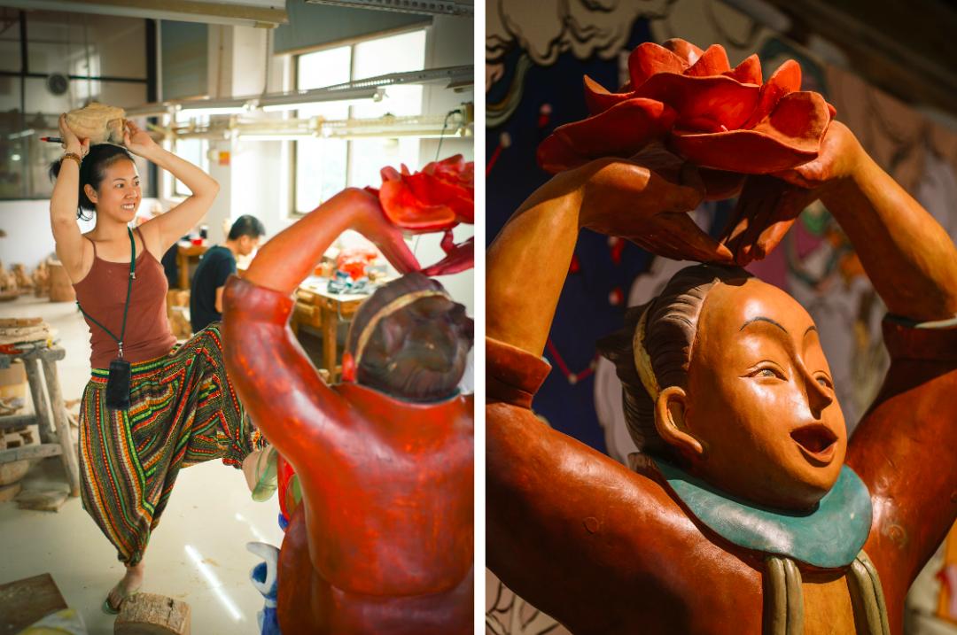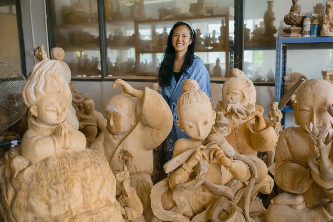 在这里,木雕师傅、漆线雕师傅、打磨师傅、做坯师傅,随时随地反馈我的需求。我的雕塑小稿给到他们,出来的效果能达到90%的复刻,之后师傅还可以进行非常细微的细节调整。