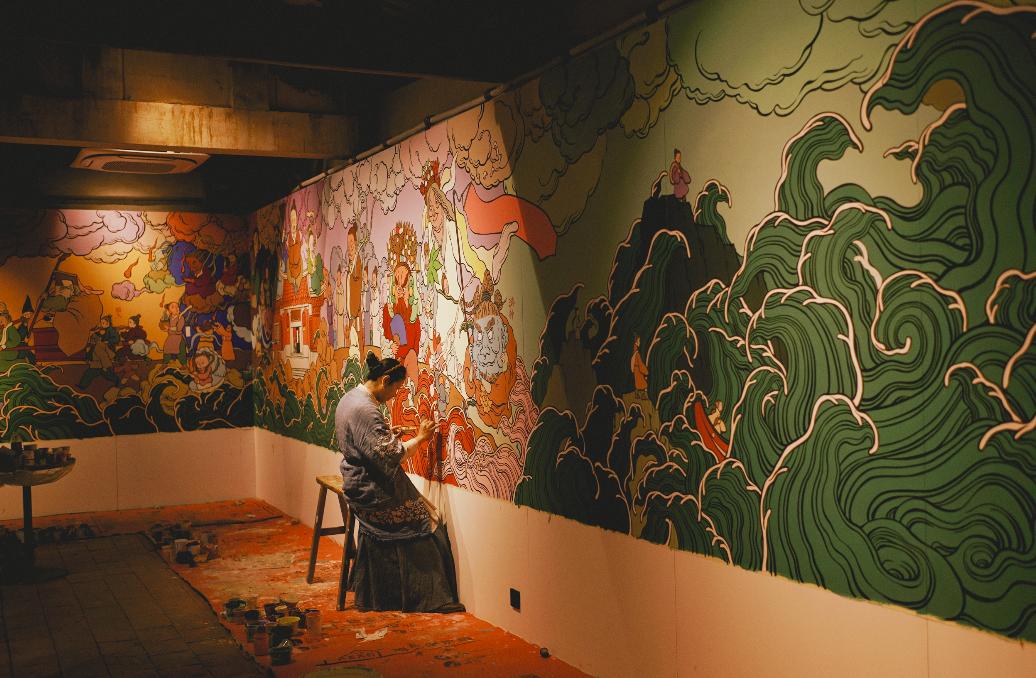 过去我在世界各地画壁画,很开心地玩了10年。近4年,我老老实实地生活在泉州,为泉州晋江的梧林古村落做了一个本土的空间“藏海厝”,结合壁画和雕塑,创造了一个关于闽南的创世神话。