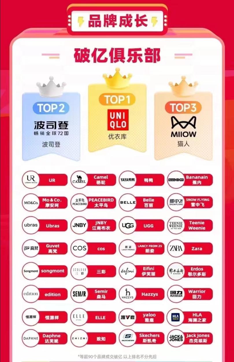 双11叠加暖冬经济,让波司登看上去成了大促的赢家之一。在天猫服饰双11战报中,波司登在破亿俱乐部里位列第二,仅次于优衣库,也是多家羽绒服中唯一强调自己成交额破10亿的品牌。