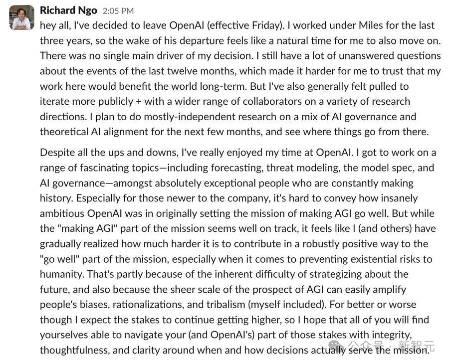 就在刚刚,OpenAI治理研究员Richard Ngo宣布离职。