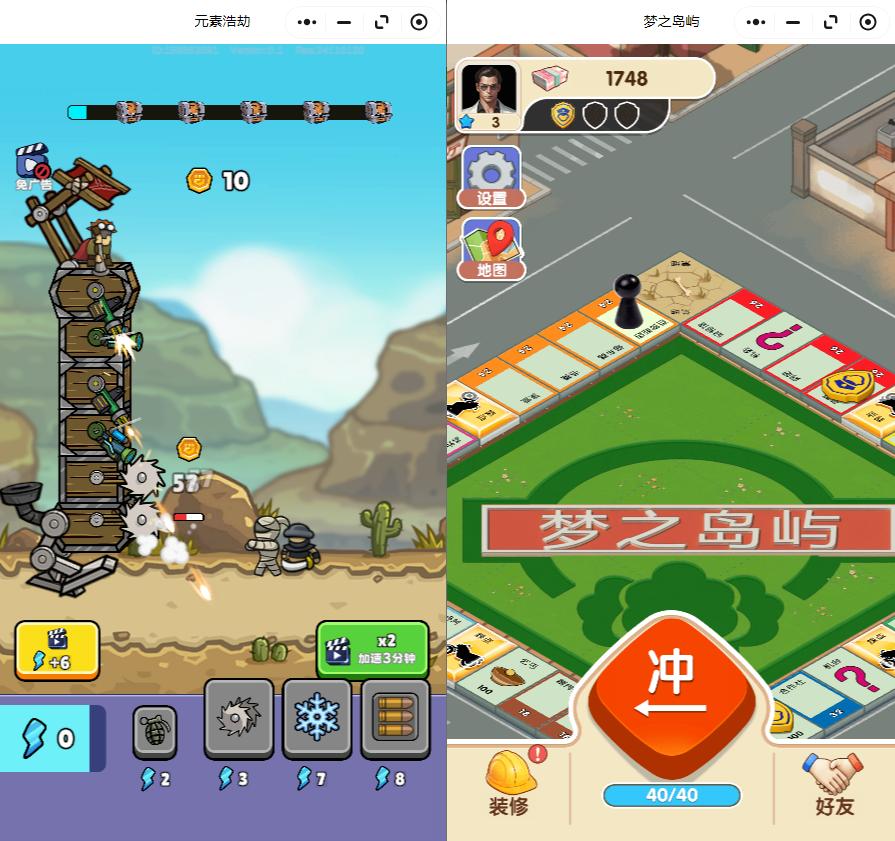 另外在国内的微信小游戏平台上,点点互动也上架了几款小游戏。例如《元素浩劫》和《梦之岛屿》等,前者的玩法类似于SayGames的《TDS - Tower Destiny Survive》,后者则类似于《Monopoly Go!》。
