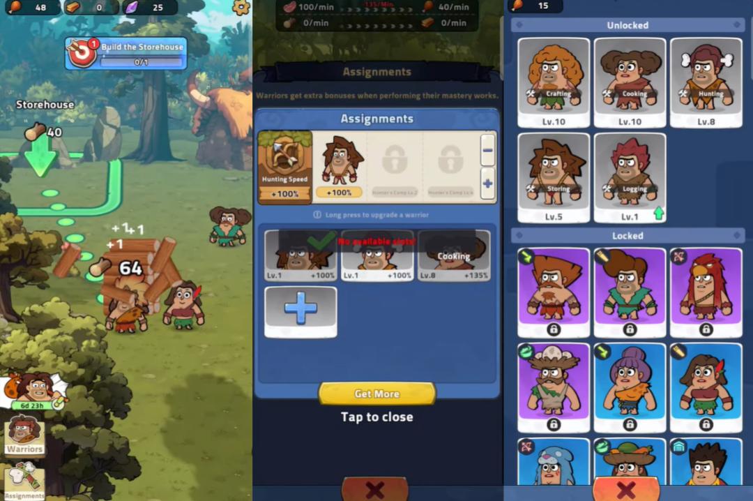 《Go-go Hero》的玩法类似于《指尖无双》。这款游戏最早在今年7月份开启海外测试,曾用名包括《Woodland Warriors》和《Cavecraft》。游戏主要在题材方面做了创新,选择了原始人生存的类型,风格接近美式卡通。