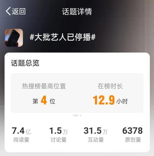 2023年,#大批艺人已停播#的话题登上微博热搜,单日阅读量超过7亿。