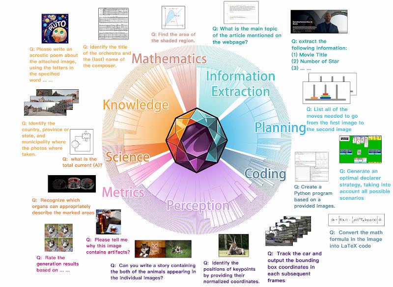 例如,MMMU的任务来自大学以上难度的各种不同学科的考题,MMBench、MMT-Bench主要集中于传统视觉任务及其变种,MathVista、MathVision着重考察数学相关任务,等等。