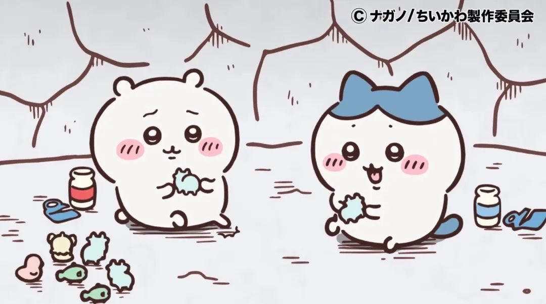 和现实小动物不一样,这些影视形象IP通常都有原著作品作为支撑。新晋顶流“三小只”Chiikawa也如是,在日本漫画家Nagano笔下,三只“小可爱”(日语中“Chiikawa”就有小可爱的意思)以最萌的外貌,过着被生活拿捏、反差极大的生活。他们不仅要起早贪黑地打工赚钱,也时常陷入无意义工作无法实现自我价值的沮丧,但幸好他们还有彼此的坚固友谊。
