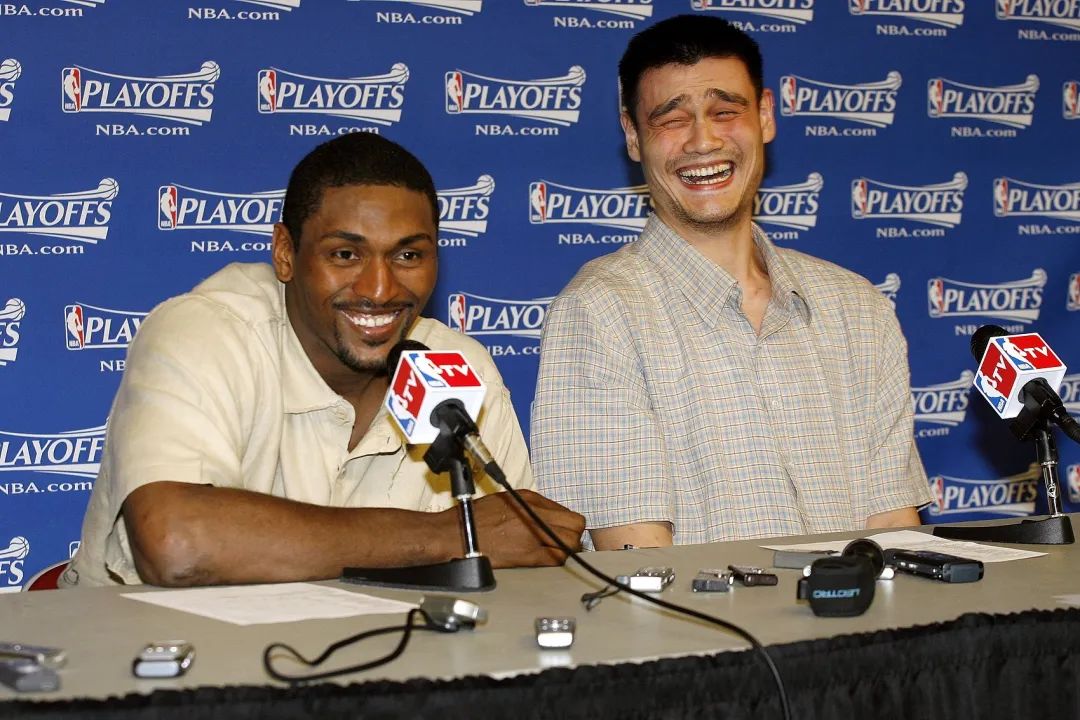 2009年4月30日,休斯敦火箭主场以92:76的成绩击败波特兰开拓者。赛后,火箭队球员出席新闻发布会。姚明在发布会上的表情成为风靡网络的表情包。(图/视觉中国)