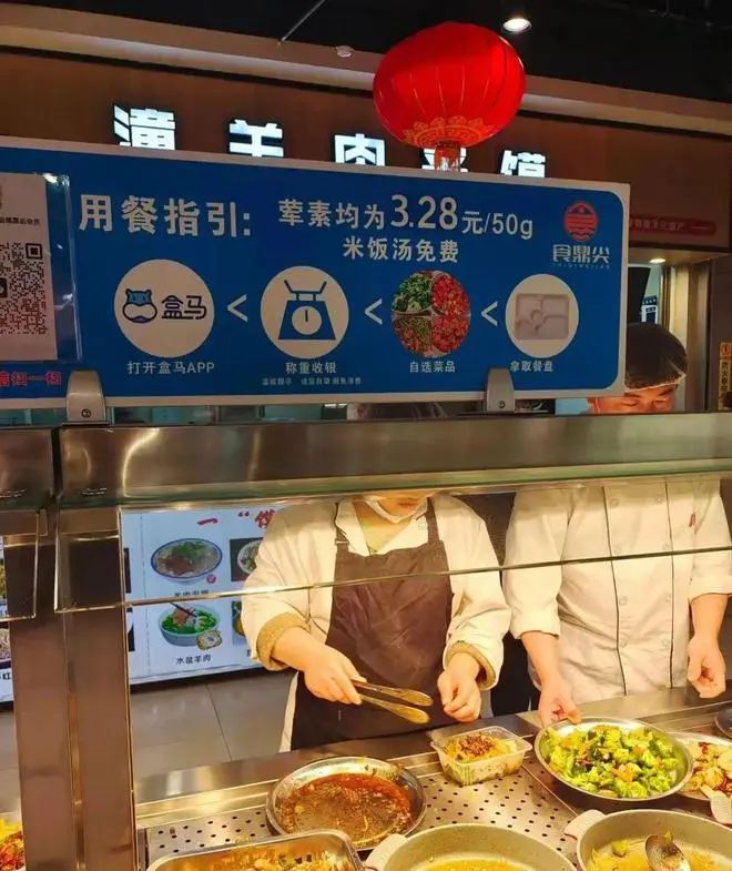 物美超市、盒马生鲜、永辉超市等商超也投入餐饮业,推出平价快餐。