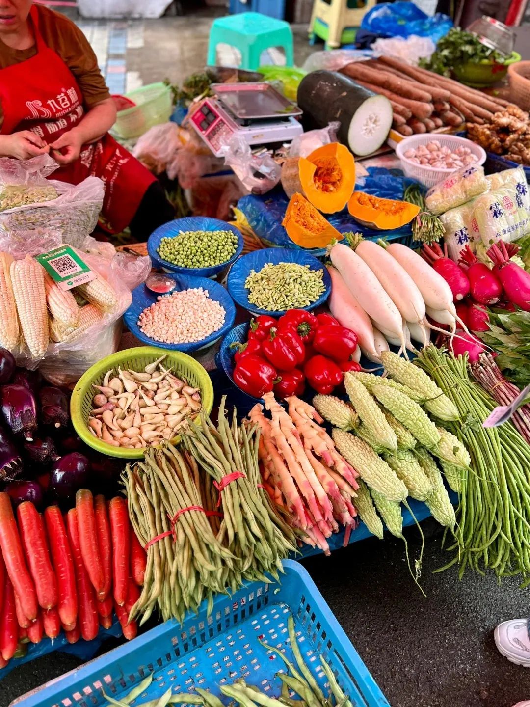 肉是切好的、菜是削皮的、玉米是剥粒的、小米辣是可以按根卖的······在北方菜市场招人打的操作,在南方菜市场却见怪不怪。