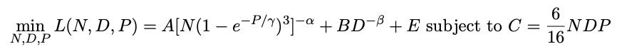 在没有对参数N、数据D和精度P的限制,只有固定计算预算的情况下进行预训练,研究人员的目标是联合最小化损失函数L(N, D, P),其中C与NDP成正比,并最终得到了一个关于最优精度P*(C)的隐式方程。