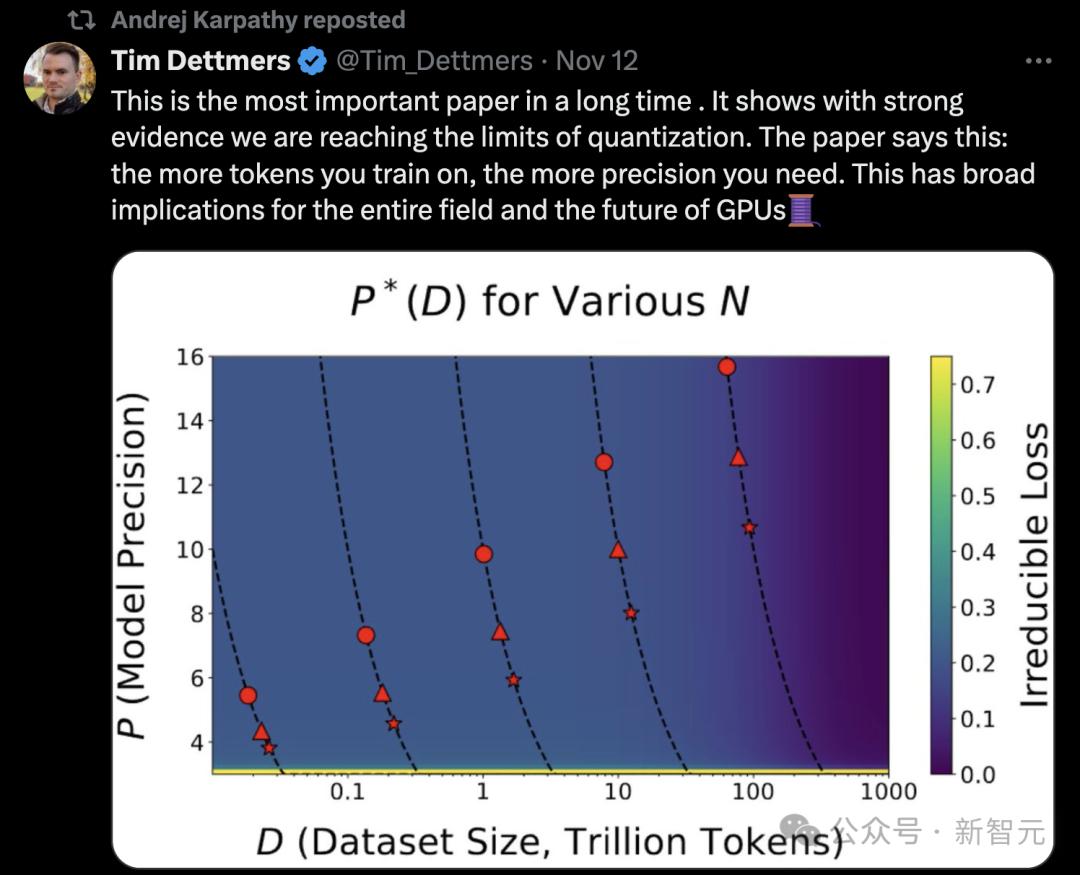 「论文直接指出:训练所需的token越多,所需的精度就越高,这对整个领域和GPU的未来都有广泛的影响」。