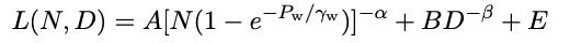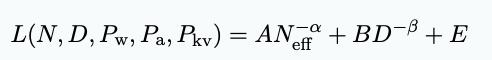 其中γw是一个拟合常数,用于衡量模型权重的敏感度;A、B、E、α、β是Chinchilla规模法则中的拟合正数常数。