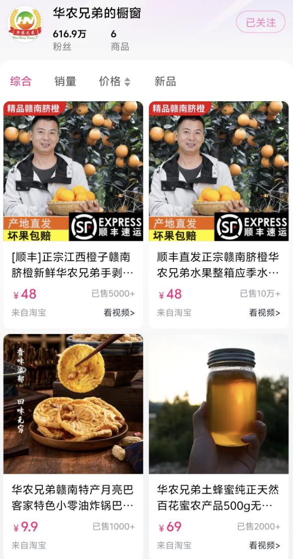 刚好,那段时间农产品视频带货刚刚兴起,华农顺理成章也走上了这条路。