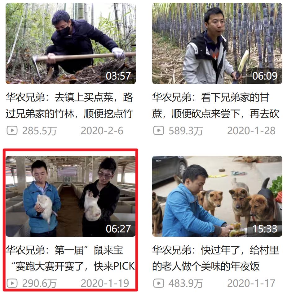 但大伙只要知道,华农兄弟当年是 B 站顶流中的顶流。几个人从 17 年开始回老家养殖竹鼠,拍摄并上传视频 ( 那时候还在好看视频 ) ,而在 18 年转战 B 站后热度一发不可收拾,截止目前的 B 站粉丝数已经突破 600 万。