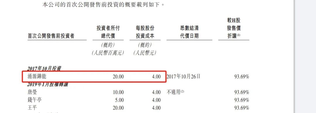 招股书显示,IPO前,国富氢能曾完成多轮融资。最早一笔,是在2017年引入“涌金系”旗下基金涌源铧能。根据披露,涌源铧能以2000万元入股,获得公司20%股权,入股成本为4元,约3.71港元。