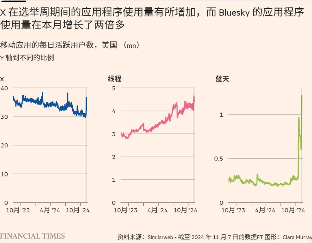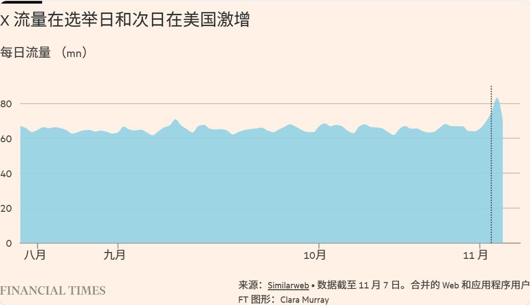 根据 SimilarWeb 发布的数据,大选后超过 11.5 万用户离开了 X,这是埃隆·马斯克接管后最多的一次。但在特朗普胜选后,马斯克宣布X平台使用量“创下了历史新高”。
