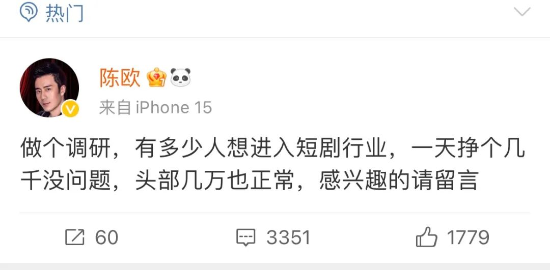 沉寂已久的陈欧,开始投身短剧江湖。去年10月,新浪科技曾报道称,陈欧正在组建短剧平台并推进版权交易,积极接洽剧本工作室和个人编剧,扩充版权库。