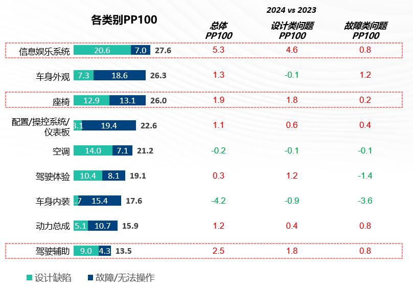 数据显示,2024年行业整体质量问题数为210个PP100,相较2023年大幅增加了37个PP100,且与2023年(+21个PP100)相比,质量问题的增速加快。