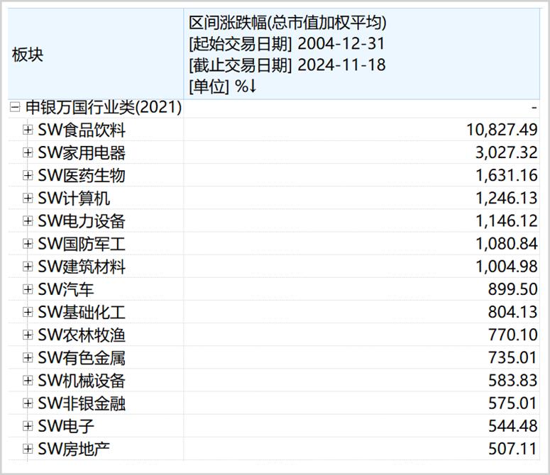 ▲2004年以来A股涨幅靠前的板块,来源:Wind