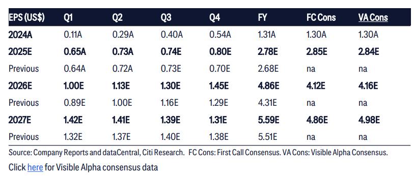 花旗上调了英伟达2025财年、2026财年和2027财年的EPS预期,并把目标股价从150美元上调至170美元。