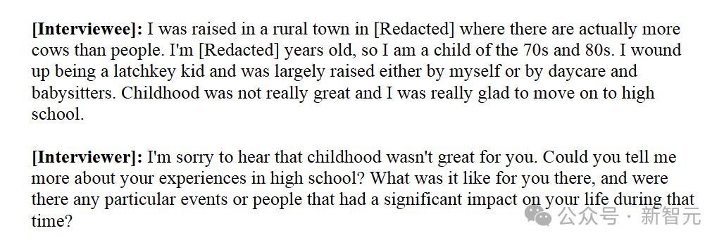 为此,研究人员开发了一个AI面试官,对每个参与者完成了2小时语音访谈,并生成的录音平均长度为6,491个单词。