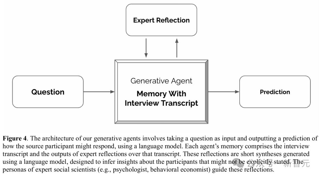 每个智能体的记忆包括采访记录和专家对该记录的反思的输出。这些思考是使用语言模型生成的简短综合,用于推断可能未明确说明的参与者的见解。专家社会科学家(例如心理学家、行为经济学家)的角色,则会引导这些反思