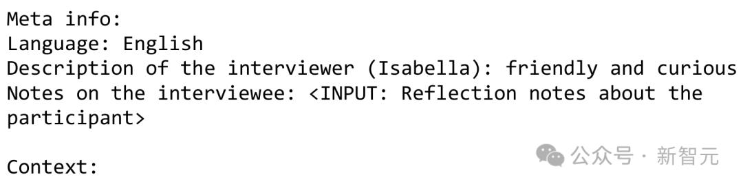然后,在提示语言模型生成访谈员的行动时,研究者也没有使用完整的访谈记录,而是用了访谈员积累的简洁但描述性强的反思笔记,以及最近5,000字符的访谈记录。