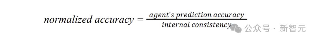 其中主要因变量是归一化准确率(Normalized Accuracy),其计算方法为:智能体预测个体回答的准确性/个体自身回答的复现准确性。