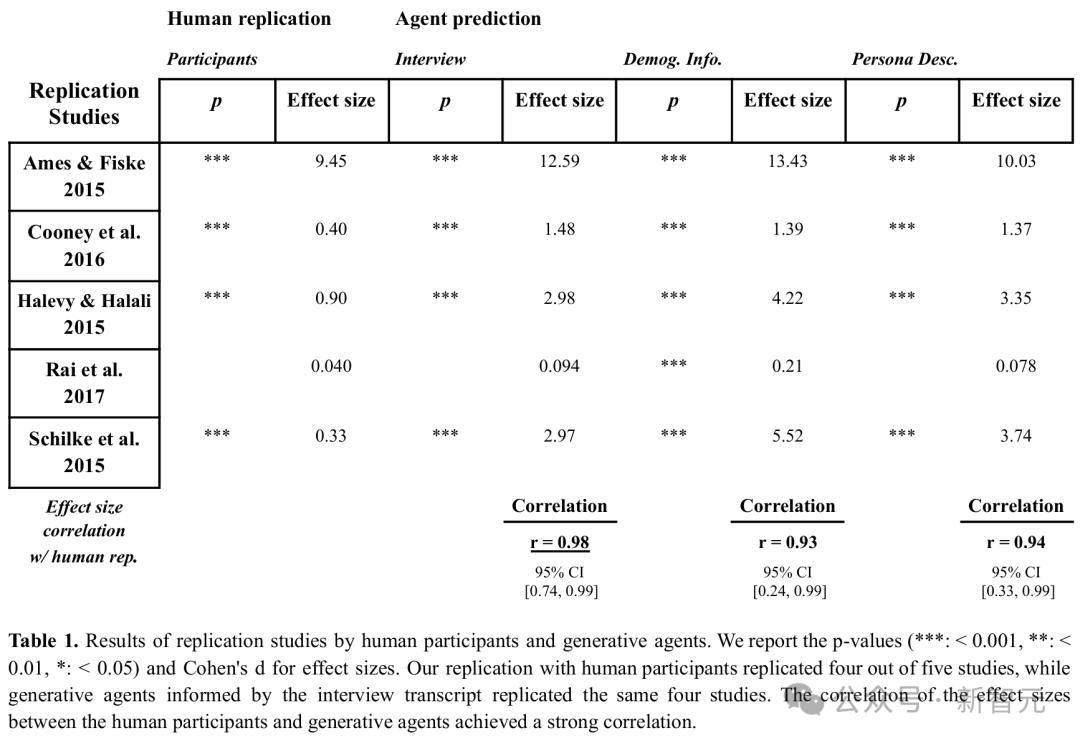 最新研究中,人类参与者和生成式智能体都完成了全部五项研究,并使用与原始研究相同的统计方法计算了p值和处理效应量。