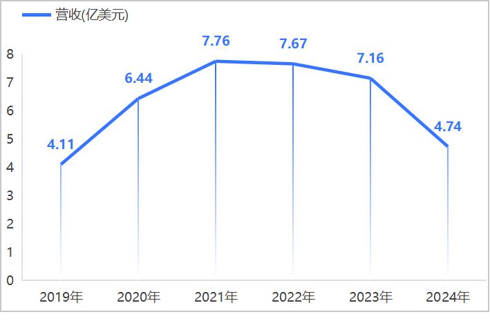 ▲Chegg近年的营收变化(注:2024年营收未统计Q4部分)