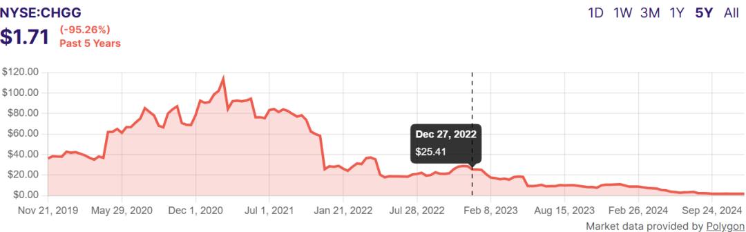 ▲Chegg 5年间的股价变化