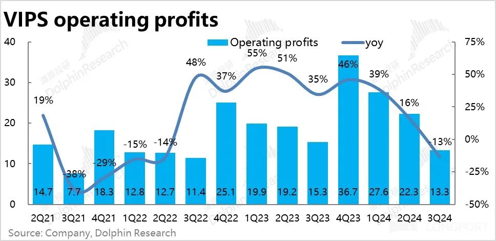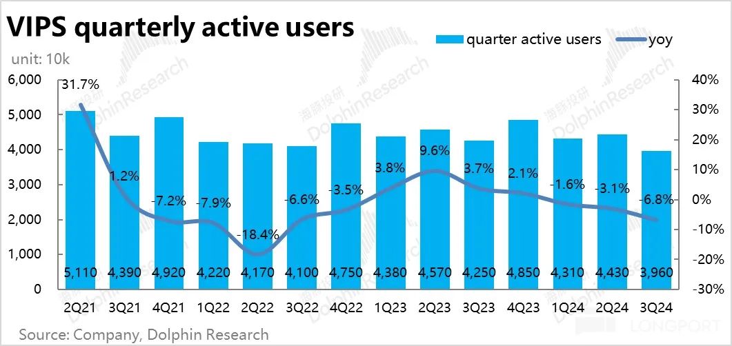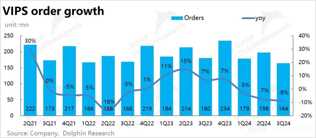 纯粹从唯品会本季的业绩角度,表现无疑是比较差的。在宏观和行业竞争的双重打击下,用户流失导致成交体量下滑,进而传导到收入和利润双双 10% 的下降,即便靠控制费用也不足以对冲。且对下季度的收入继续下跌的指引,体现出了 4Q 有类似幅度的业绩压力。