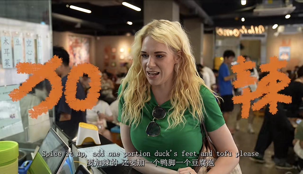 苏菲是一名英国小姐姐,她不仅会说中文,还会用柳州方言点餐,比如说“二两,加鸭jio,加豆腐bo!”,听起来还有点柳州味儿。她在社交媒体上分享的螺蛳粉视频,有的播放量已经上亿。