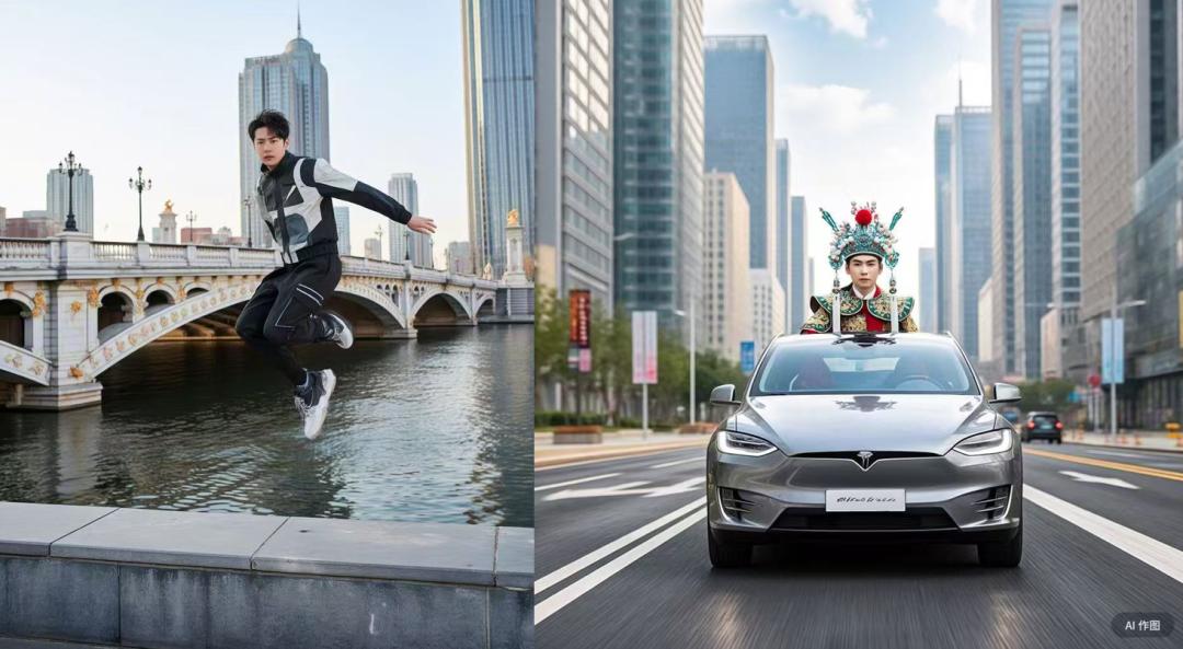 不过,宣传是这样,我自己在已经导入了iRAG技术的文小言APP里试了下,比如输入“演员王x博在天津海河跳桥”,画面还大差不差,但试着输入“87版红楼梦演员贾宝玉开着特斯拉Model Y”时,画面就不太对劲,调了几版也不对,可能还是自己提示词输入有问题。