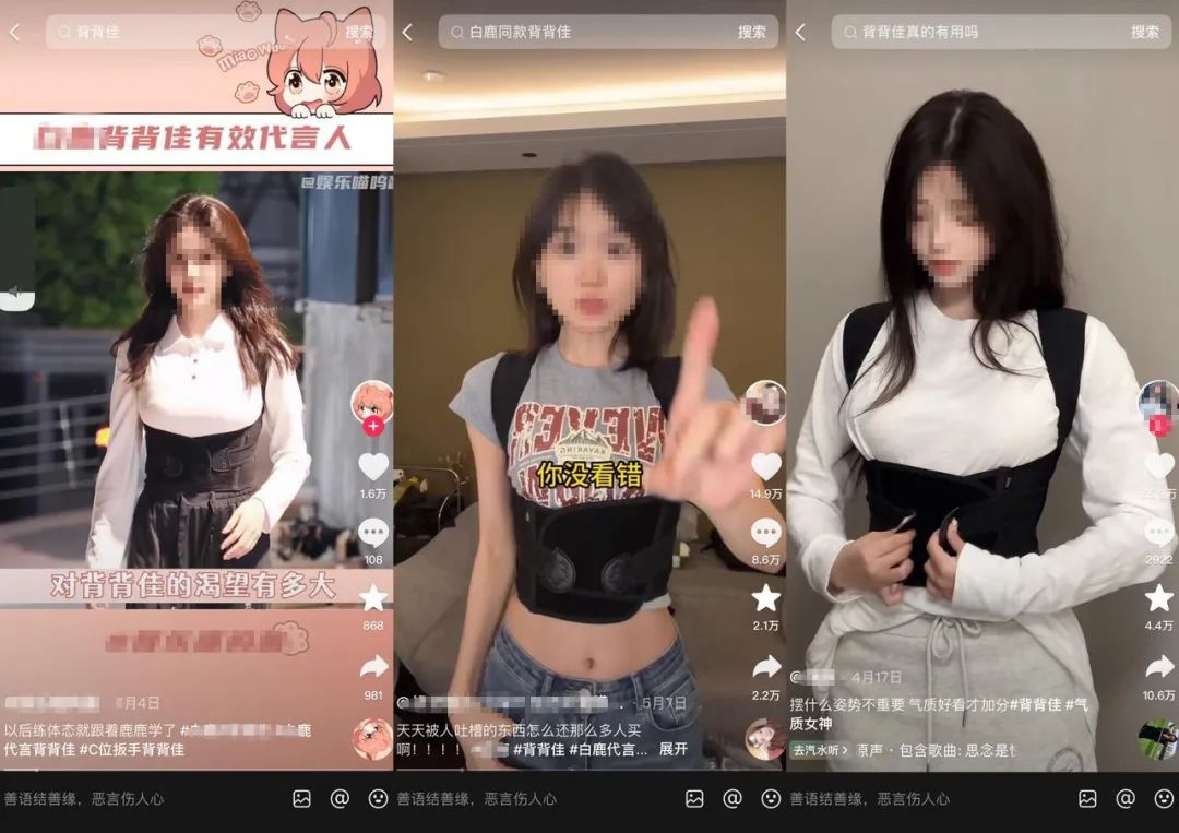 社交媒体上“背背佳”相关的话题,几乎都围绕“每天戴一戴美背挺胸”、“如何正确佩戴改善体态”。这也是为什么,背背佳如今的商品详情页的介绍,也开始弱化矫姿功能,而开始精准迎合当下用户的“变美”需求——“白鹿同款,开肩美背。”