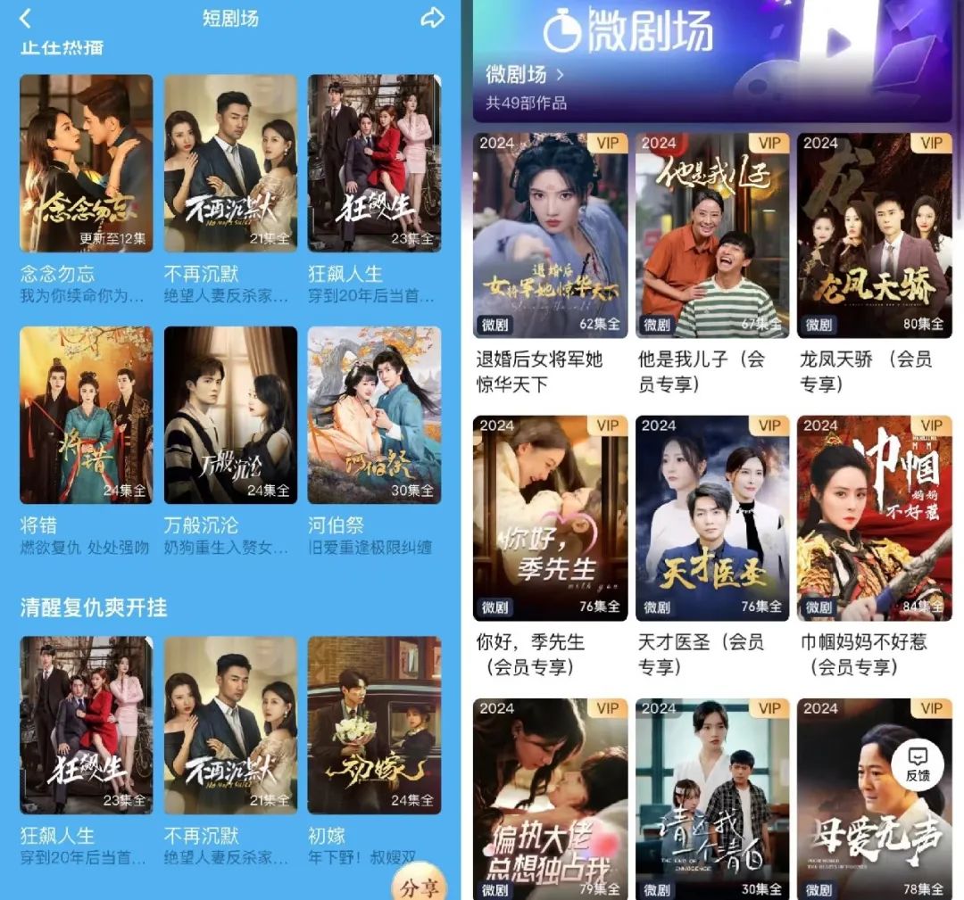 爱奇艺宣布微剧场、短剧场正式上线;几乎与抖音快手同时开始微短剧赛道的腾讯视频与芒果TV,一方不断升级分账机制、推出新的激励计划,另一方则联动湖南卫视出“730大芒剧场”让短剧进入电视黄金档,芒果超媒直接焕新风芒APP、剑指“红果”;优酷也在大幅提升分账比例、上线多部网文改编的短剧IP……