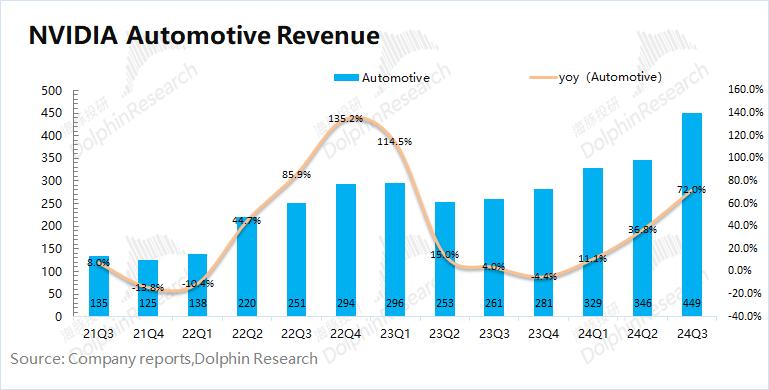 2.3 汽车业务:2025财年第三季度英伟达汽车业务实现营收4.49亿美元,同比增长72%,英伟达的汽车业务,主要来自于自动驾驶平台推动的。