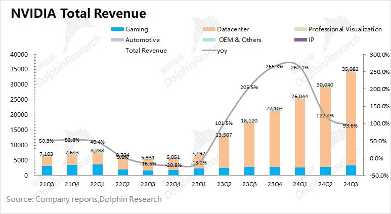 2)本季度数据中心业务同比增长112%,主要是由大模型、推荐引擎和生成式 AI的需求推动。业务的增长,得益于云服务厂商等资本开支的增加。随着下季度Blackwell的出货,公司相关收入有望继续增长。