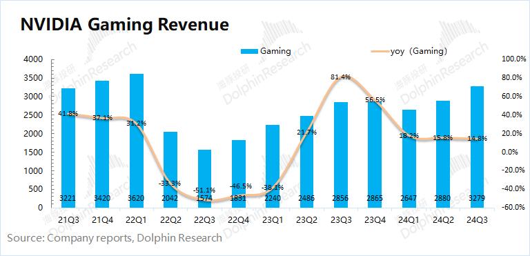 2.2游戏业务:2025财年第三季度英伟达游戏业务实现营收32.8亿美元,同比增长14.8%。主要得益于GeForce RTX 40系列GPU和游戏机SOC的销量增加。。