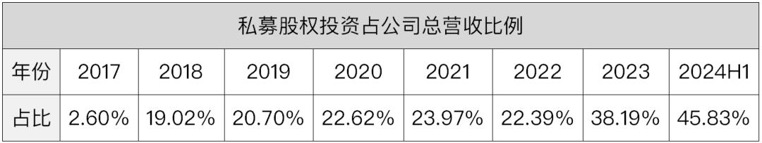 2017年,私募股权投资业务首次出现在四川双马的年报里,当时这一新业务线的营收占比仅为2.60%;到了今年上半年,该业务线的营收占比高达45.83%,已经超过了老本行水泥业务,成为了公司的主营业务。