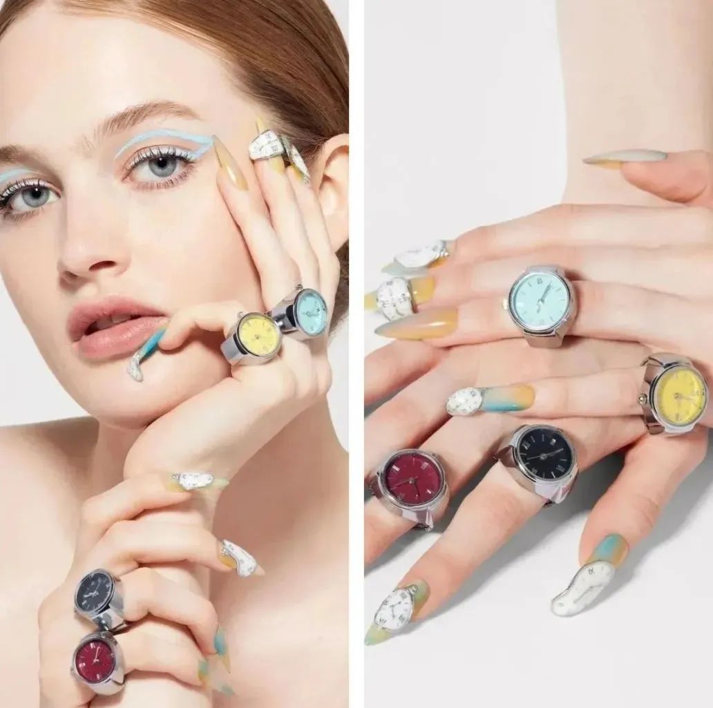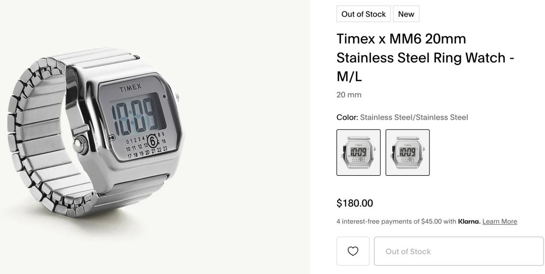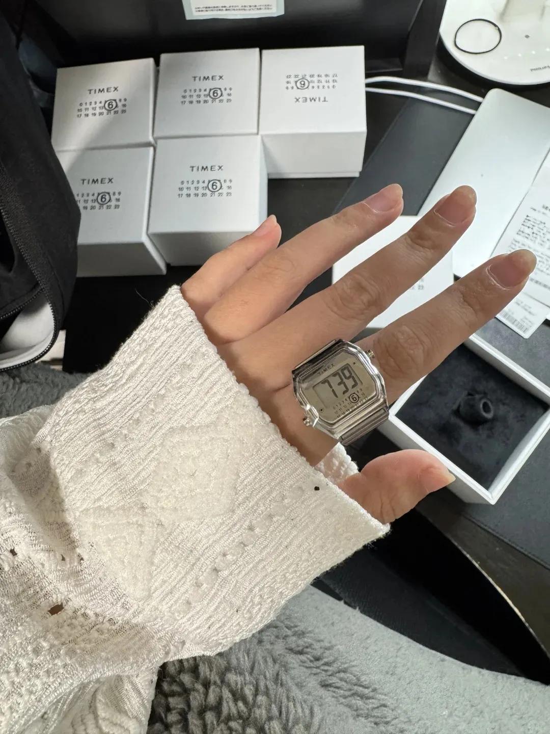 前段时间,美国手表品牌 TIMEX 联合法国时尚品牌 Maison Margiela,也突袭发售了一款造型独特的戒指表。