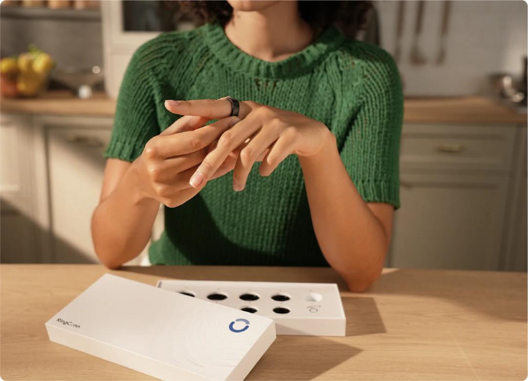 它外观上与普通戒指类似,提供九种尺寸和三款配色选择,重量最轻为 2.3 克,几乎无感佩戴。