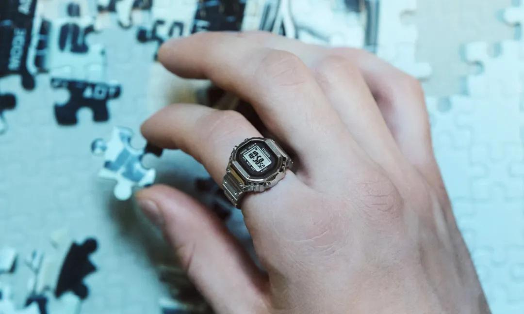 没隔几天,日本公司卡西欧为纪念进军数字手表50周年,也造了一款戒指表 ——CRW-001-1JR。