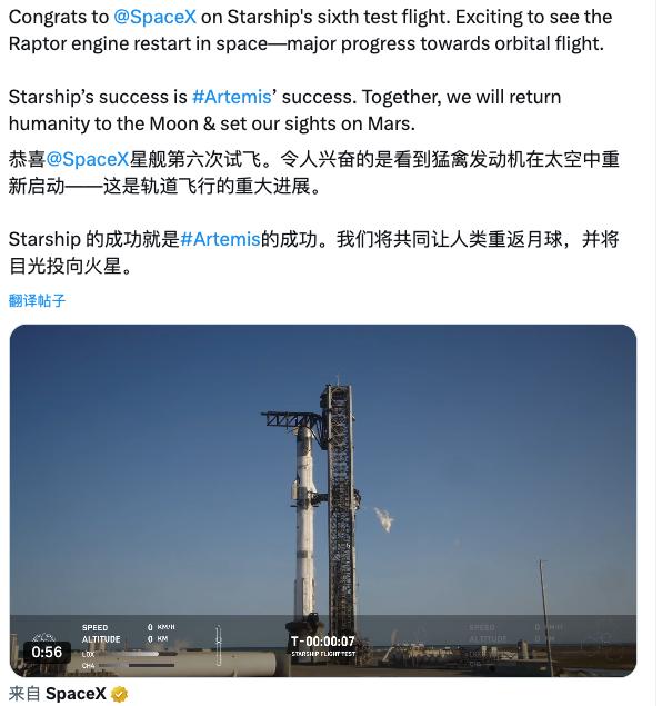 但回头一看,美国宇航局局长比尔 · 尼尔森照样在社交平台发布祝福。