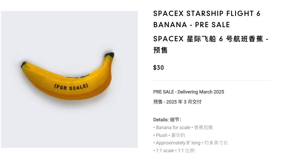如今在 SpaceX 官网,甚至已经开始卖同款香蕉玩具了。