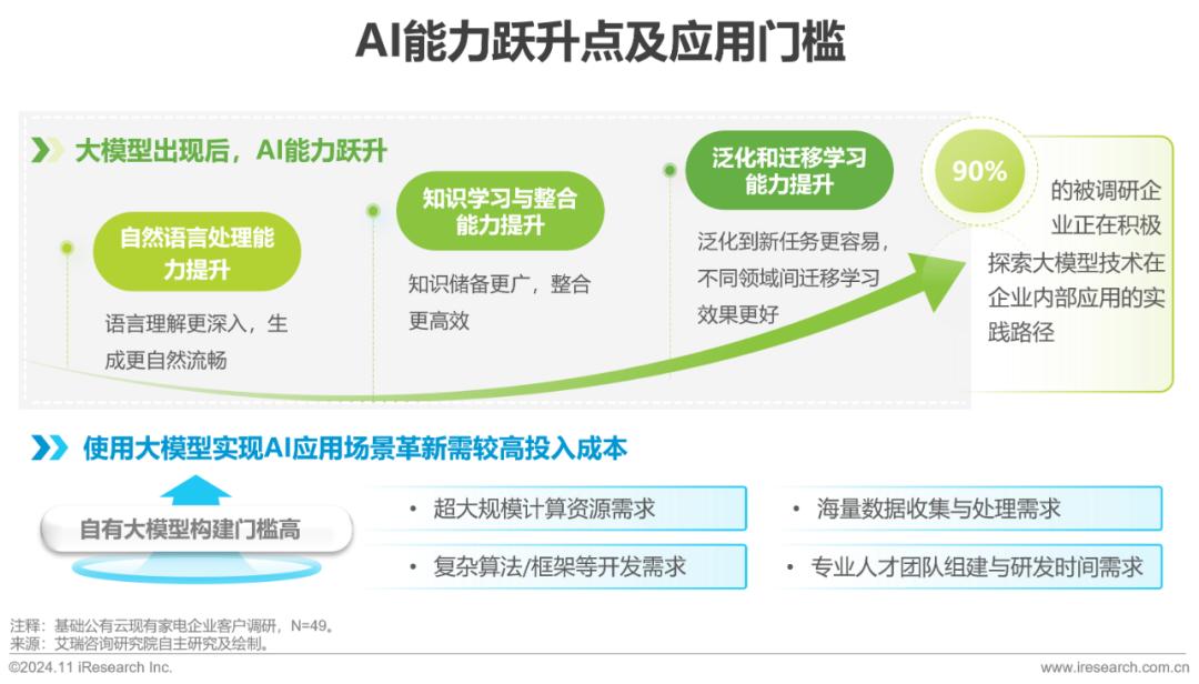 大幅降低投入成本外,可通过调整成熟基础模型快速搭建自有模型及应用