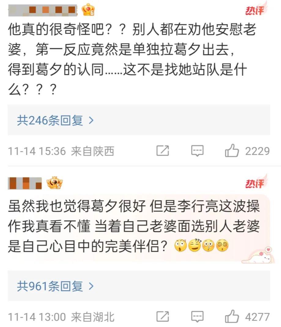 和分开讨论二人时的风评不同,这些旧照被挖出后,评论区最多的声音不是指责麦琳的「疯」,也没有嘲讽李行亮的「茶」,大家只是下意识地发问: