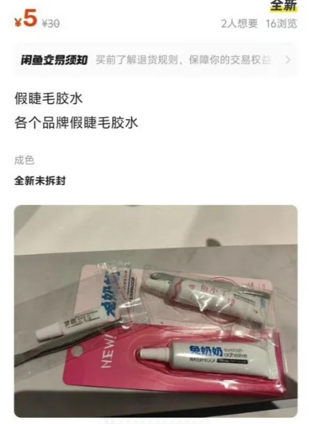 5元挂出的闲置睫毛胶水、30元挂出的儿童旧鞋......