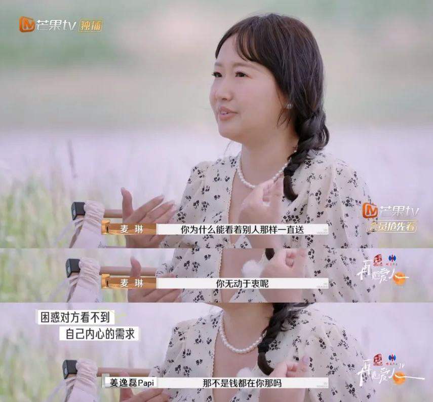 李行亮反复在节目中诉说自己渴望伴侣理解自己的精神世界,但全职太太麦琳说自己也有需要处理的事情,拒绝了解对方的内心。